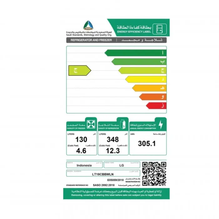 ال جي ثلاجة بابين 17 قدم إنفرتر – أبيض Lt18cbbwln