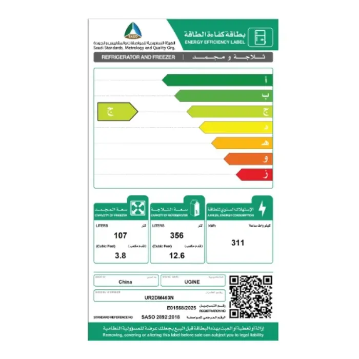 أوجين ثلاجة بابين 16 قدم نو فروست – أبيض UR2DM463N W