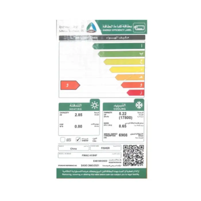 فيشر مكيف شباك 17800 وحدة – حار و بارد FWAC-H18HF