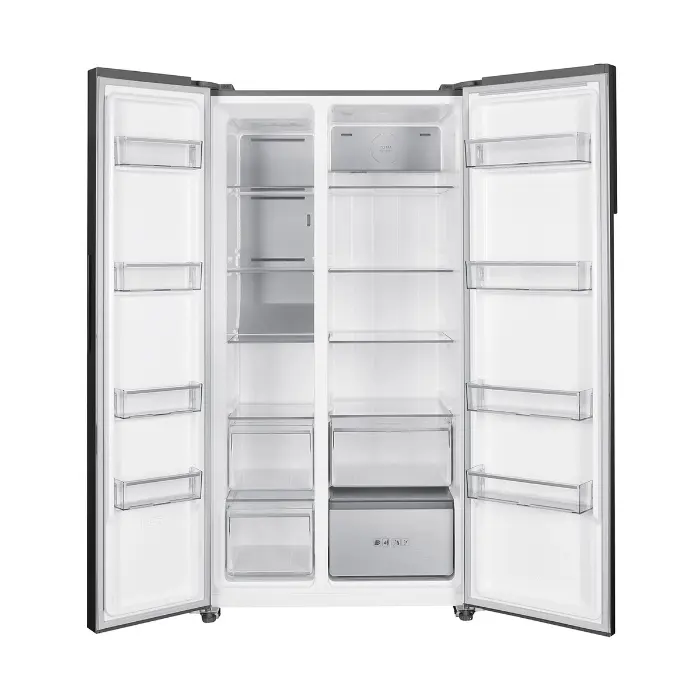 هام ثلاجة دولابي تتميز بمساحة داخلية واسعة ومرتبة بعناية لتناسب احتياجات الأسرة الكبيرة تم تصميم الأرفف والأدراج بطريقة ذكية تمنحك سهولة في الوصول إلى الأطعمة وتنظيمها بشكل أنيق، مع إمكانية استيعاب كميات كبيرة من المواد الغذائية والمشروبات.