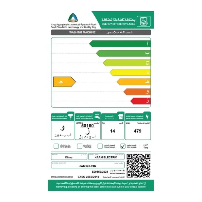 • السعة: 14 كيلو – مثالية للعائلات الكبيرة وغسل كميات كبيرة من الملابس بكفاءة.