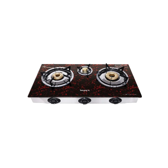 IMPEX موقد سطحي غاز زجاج 3 شعلات – أسود / فضي |